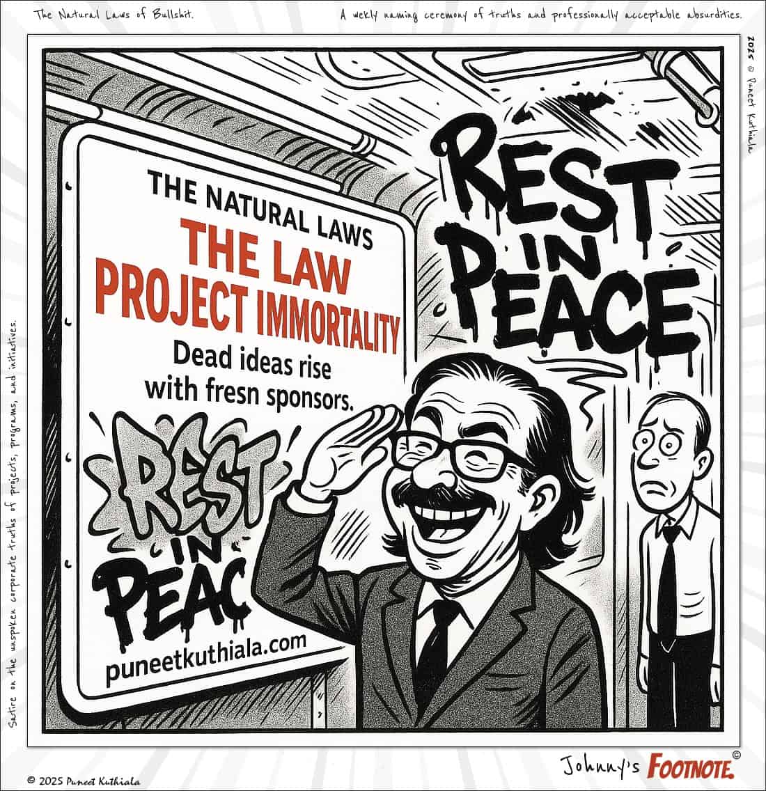 The Natural Laws of Bullshit are not written in policy manuals or leadership books. They emerge in every meeting, report, and email thread. A satirical mirror of corporate life—covering power games, calendar carnage, metric manipulation, cultural theater, project illusions, and strategic smoke screens. These laws don’t need endorsement. They enforce themselves.